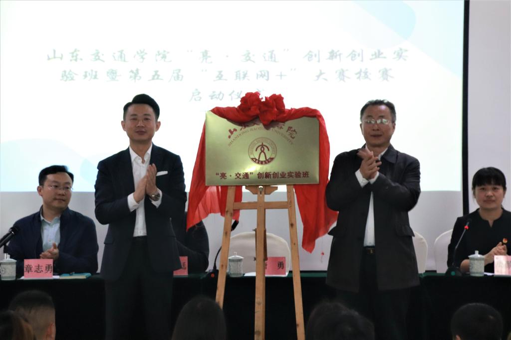 会议开始,教务处相关负责同志宣读了山东交通学院第五届“互联网+”大学生创新创业大赛工作方案。随后,唐勇为“亮·交通”创新创业实验班导师李爱斌颁发聘书,并共同为“亮·交通”创新创业实验班揭牌。