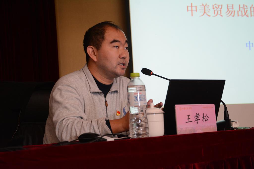 随后,邀请中国人民大学经济学院教授、博士生导师王孝松进行专家辅导报告。王孝松“以深化改革开放应对外部环境的不确定性:中美贸易战的属性、影响和对策”为题作了形势政策报告。他对中美贸易战的发展过程进行了回顾,用大量详实的数据与图表分析了中美贸易摩擦的特点,以及对中美两国产生的影响。他指出,中国需要妥善解决中美贸易不同类型的分歧与矛盾的同时,要加大科研投入,产出原创性领先技术,最终通过深化改革开放来妥善解决中美贸易摩擦。