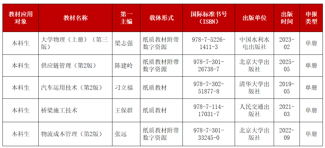 近日,《山东省教材委员会办公室关于公布第三批山东省普通高等教育一流教材名单的通知》(鲁教高函〔2025〕1号)确定了第三批山东省普通高等教育一流教材,我校5部教材入选,入选数量居省内同类院校前列。