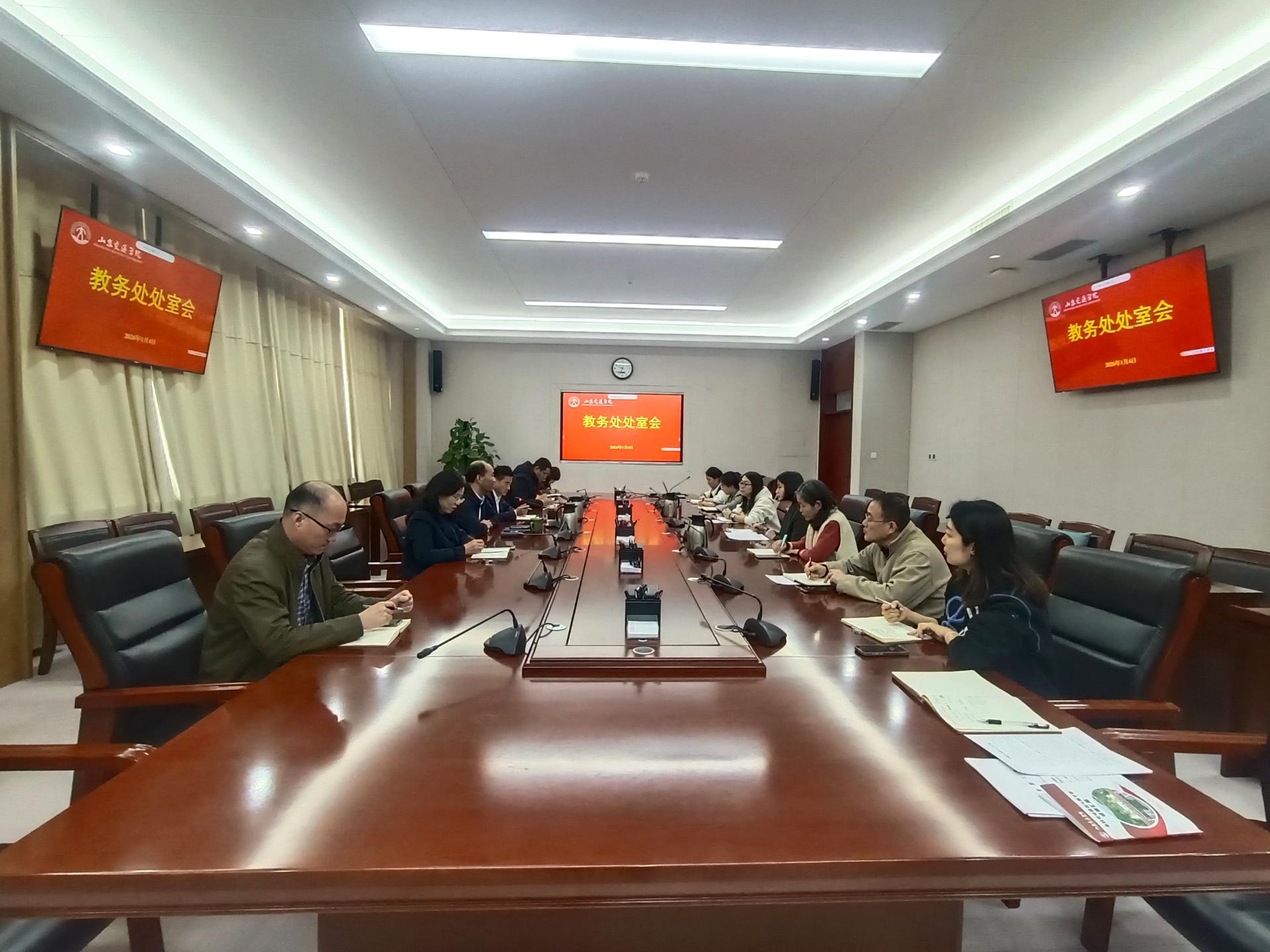 会上,教务处对2025年工作进行系统总结,查摆存在的问题和短板弱项,并分析深层次原因;对2026年工作进行系统部署,特别是“十五五”专业建设与人才培养专项规划制定、2026年工作计划与重点工作部署、本科教育教学制度体系建设等方面,全体成员针对以上工作进行交流与讨论。