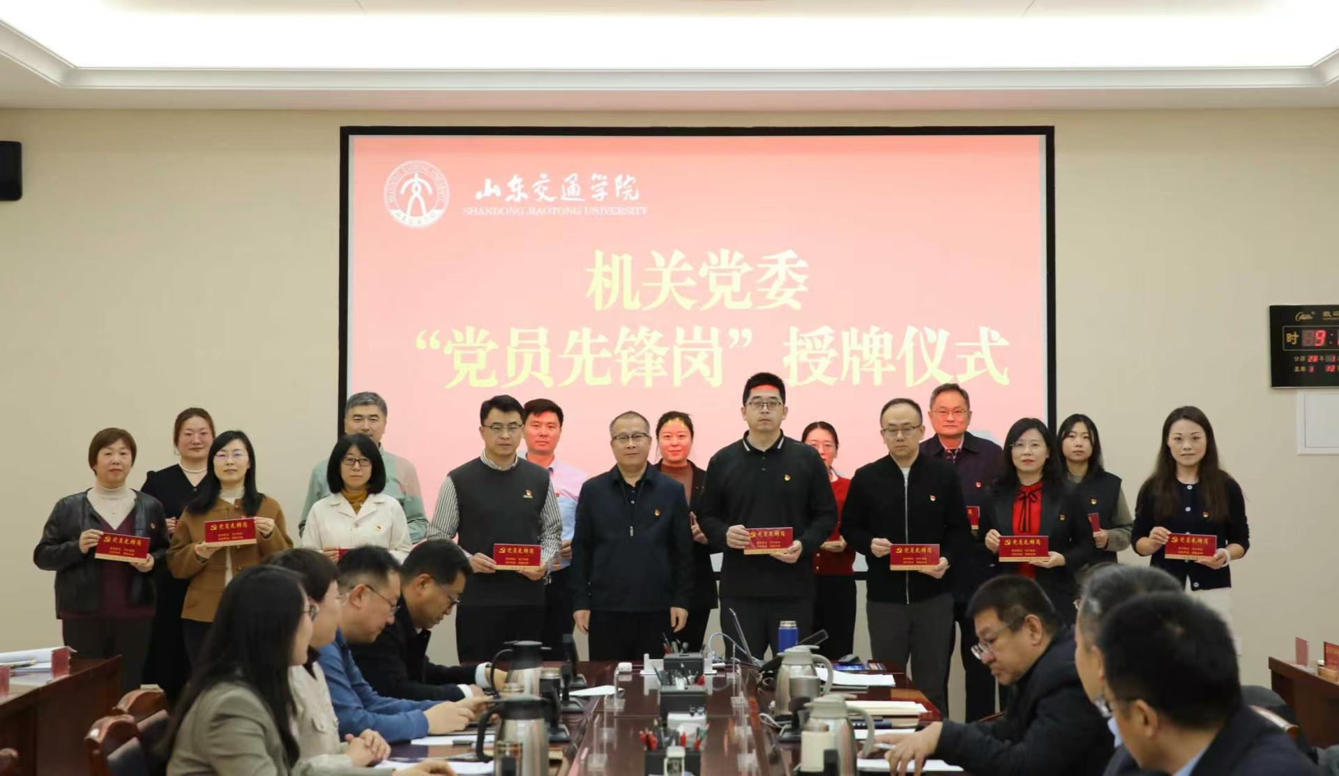 1月12日上午,机关党委“党员先锋岗”授牌仪式在长清校区明德楼301会议室举行。学校党委副书记李贞涛,学校党委委员、党委组织部部长王兴盈出席。