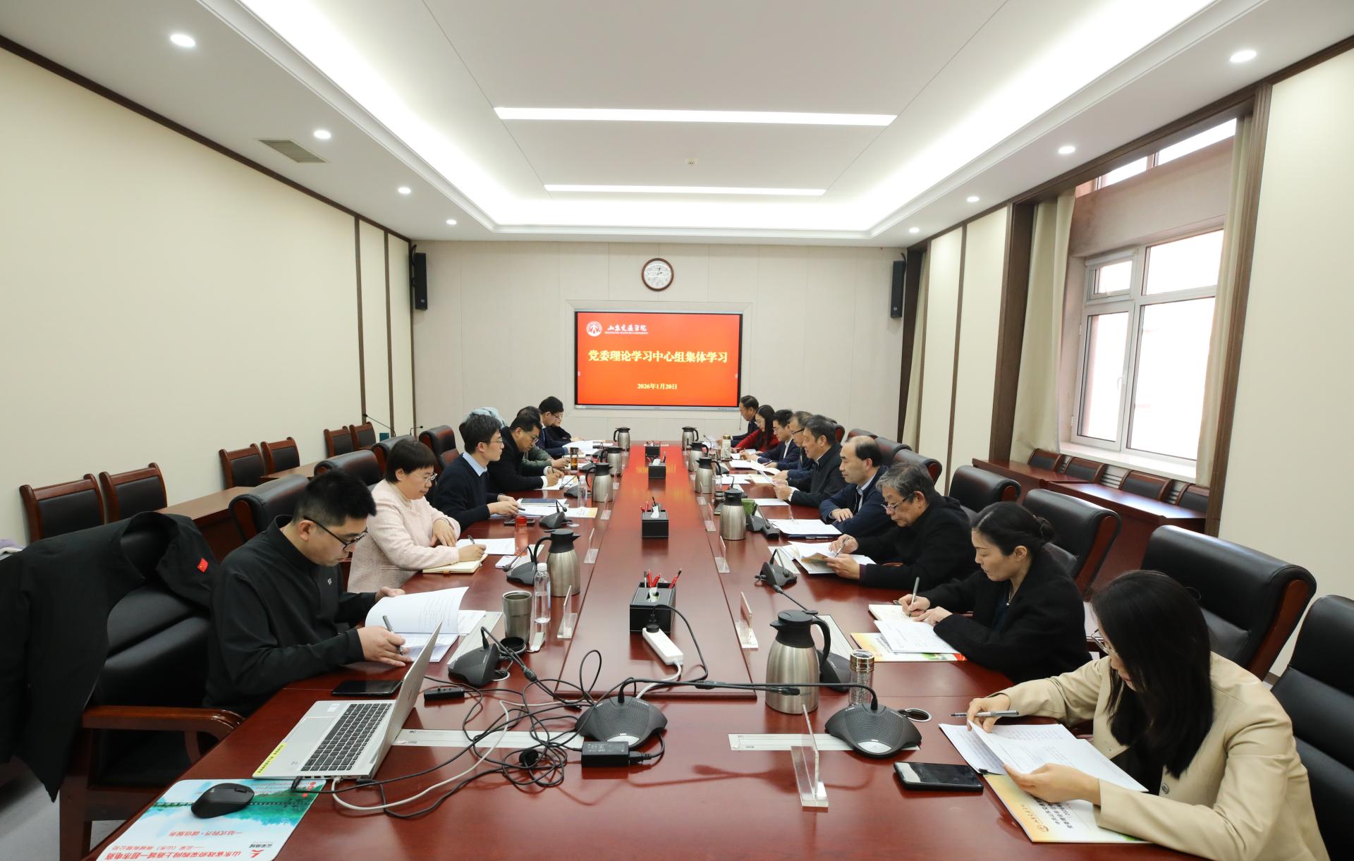 1月20日,学校党委理论学习中心组在长清校区明德楼302会议室进行2026年第一次集体学习,学习中国共产党第二十届中央纪律检查委员会第五次全体会议公报、《党委(党组)讨论决定干部任免事项守则》;观看央视专题片《一步不停歇 半步不退让》。党委书记王伟主持学习并讲话。