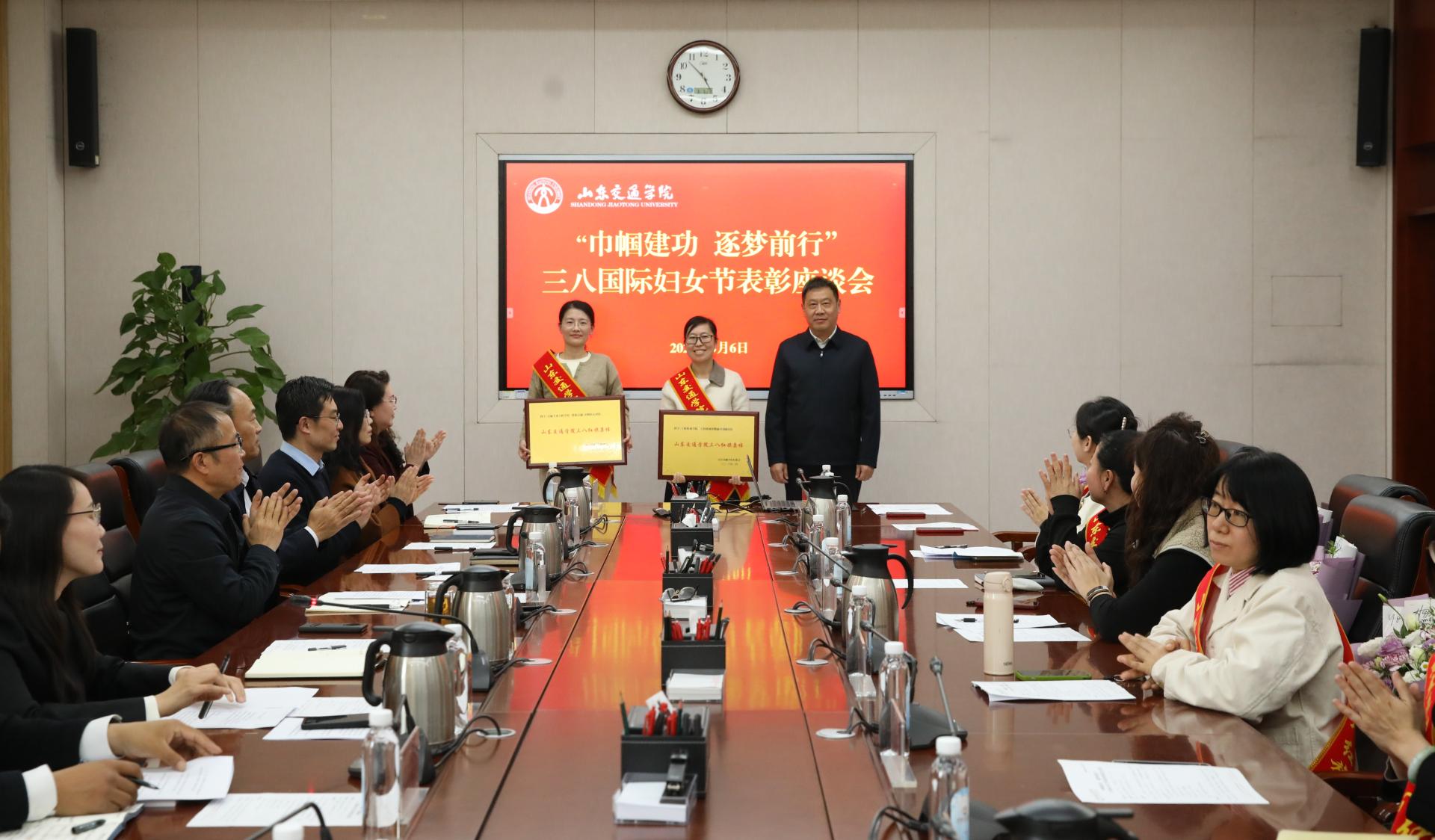 3月6日下午,在第116个“三八”国际妇女节来临之际,学校在长清校区明德楼303会议室召开“巾帼建功 逐梦前行”主题“三八”国际妇女节表彰座谈会。学校党委书记王伟,党委副书记李贞涛,党委委员、党委组织部部长王兴盈,党委委员、党委统战部部长刘庆波出席。会议由王兴盈主持。
