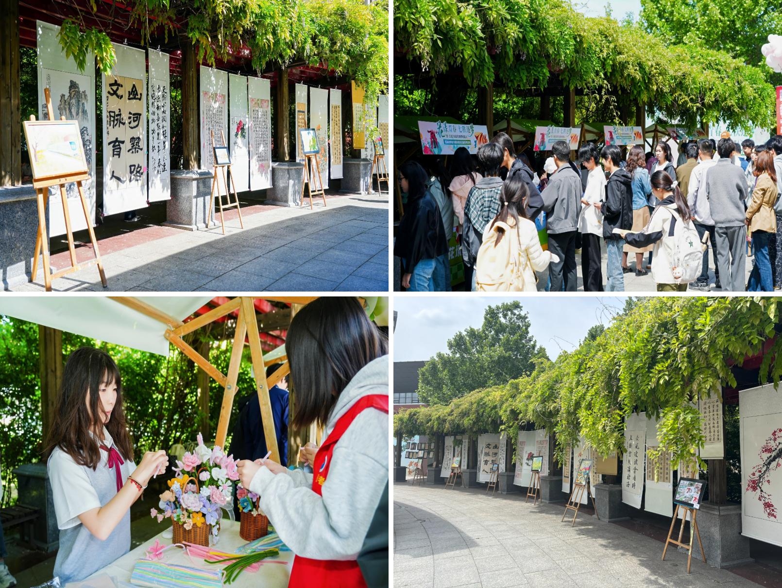 活动设置了书画展示区、舞蹈展示区和创意互动区三大板块。书画展示区笔墨飘香、佳作纷呈,集中展示了来自全校11个学院125份作品中的优秀之作;舞蹈展示区中,少数民族学子身着特色服饰,演绎维吾尔族舞、傣族舞、藏族舞等民族舞串烧;7项以“花”为主题的创意互动区,寓意学校七十载芳华依旧、桃李芬芳,师生们踊跃参与、沉浸体验。