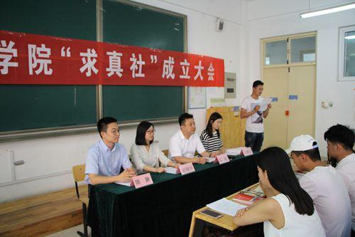 为深入贯彻落实全国、全省大学生思想政治教育工作精神,推进“两学一做”学习教育制度化常态化,5月26日下午,外国语学院在2号教学楼A103教室举办学生马克思主义社团“求真社”成立大会。学校党委组织部相关负责同志,外国语学院分党委副书记、分团委书记、辅导员、学生党员和部分入党积极分子参加活动。 活动中,外国语学院分团委书记宣读了“求真社”章程,从社团宗旨、社团任务、活动形式、最终目标等方面介绍了社团的基本情况,社团将通过对马克思主义经典著作的研读、对国际共产主义运动发展历史的学习,让学生真正理解马克思主义的理论、观点和方法,帮助学生坚定马克思主义理想信念,树立科学的人生观,世界观和价值观。发挥社团成员的先锋模范作用,使之成为学生思想政治教育的骨干,通过朋辈教育促进思想政治教育工作的影响力和实效性。 外国语学院预备党员和入党积极分子代表就学习《共产党宣言》的感悟进行了发言,他们结合自身情况表达了对于《共产党宣言》的理解与认识,在筹备“求真社”的过程中,学生通过对马克思主义经典著作的学习,深刻体会到马克思主义对自身实践的指导意义,表示在社团成立后,将以更大的热情投入到社团的活动当中,坚定共产主义的理想信念,用科学的理论知识武装自己,更好地完成时代赋予自己的责任,为实现“中国梦”做出自己的贡献。。 外国语学院分党委副书记强调马克思主义是我党永葆生机与活力的决定因素,是无产阶级思想的科学体系,党和国家高度重视大学生思想政治教育,要求学生紧跟党中央的步伐,扎实推进“两学一做”学习教育从“关键少数”向基层延伸,发挥模范带头作用,做马克思主义坚定的追随者与传播者。 学校党委组织部相关负责同志对“求真社”的成立表示了祝贺,指出“求真社”是外国语学院扎实推进“两学一做”学习教育制度化常态化的重要举措,希望学生党员、入党积极分子通过学习,坚定理想信念,牢固树立“四个意识”,做到学而信、学而思、学而行,能真正将马克思主义的理论、观点和方法运用到自己的工作、学习和生活中,发挥先锋模范作用。(外国语学院 文/隋翀 图/冯云贺)