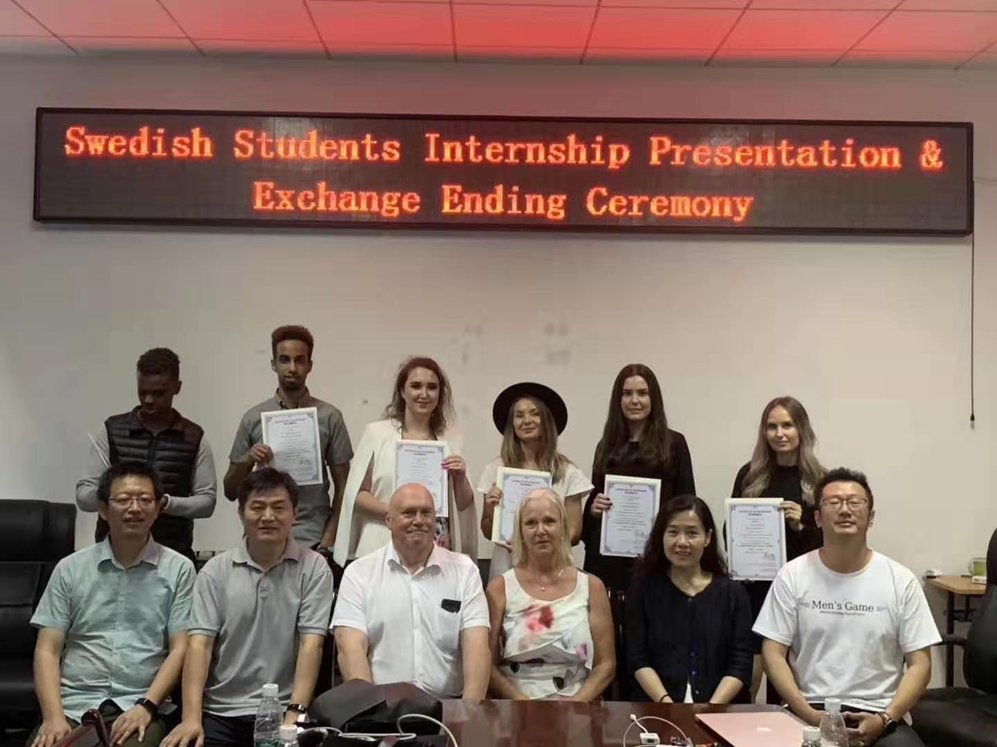 7月12日,信息科学与电气工程学院举行瑞典交换生实习答辩暨交换结业仪式。经过一年的学习及企业实习生活,6名瑞典布罗斯大学交换生参加结业仪式,国际合作交流处、信息科学与电气工程学院负责人,部分教师和留学生家长参加仪式。
