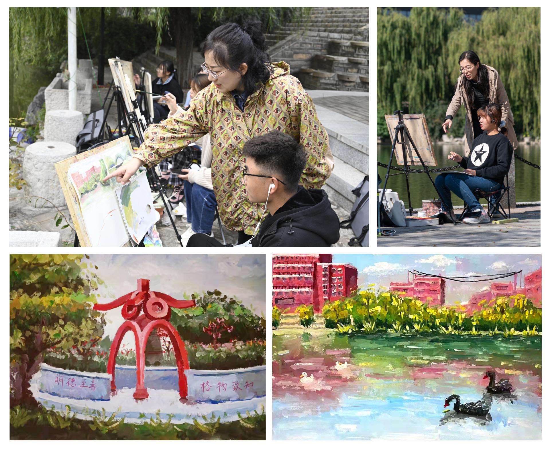 活动选取文昌湖畔、校友林、“六个一”校园文化景观等校园风光进行创作,学生们在专业教师的指导下共创作百余幅优秀作品,生动展现了学校的人文气息和秀丽景色,吸引了大量师生驻足观赏。本次活动将学生专业理论知识与实践进行结合,促进学生业务能力提升的同时也增强了他们爱校荣校的意识,营造了和谐文明的校园文化氛围。