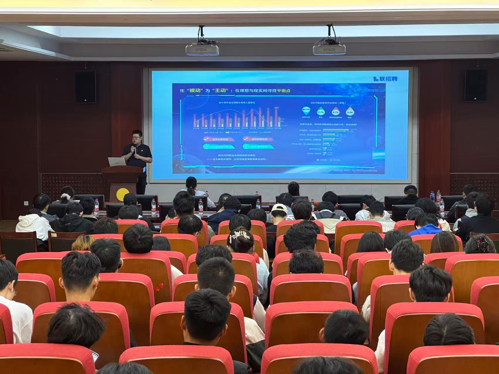 近日,学生工作处、招生就业处联合举办大学生就业指导公益讲座,邀请智联招聘交付中心华北区域经理、特聘讲师郑亚南作报告。