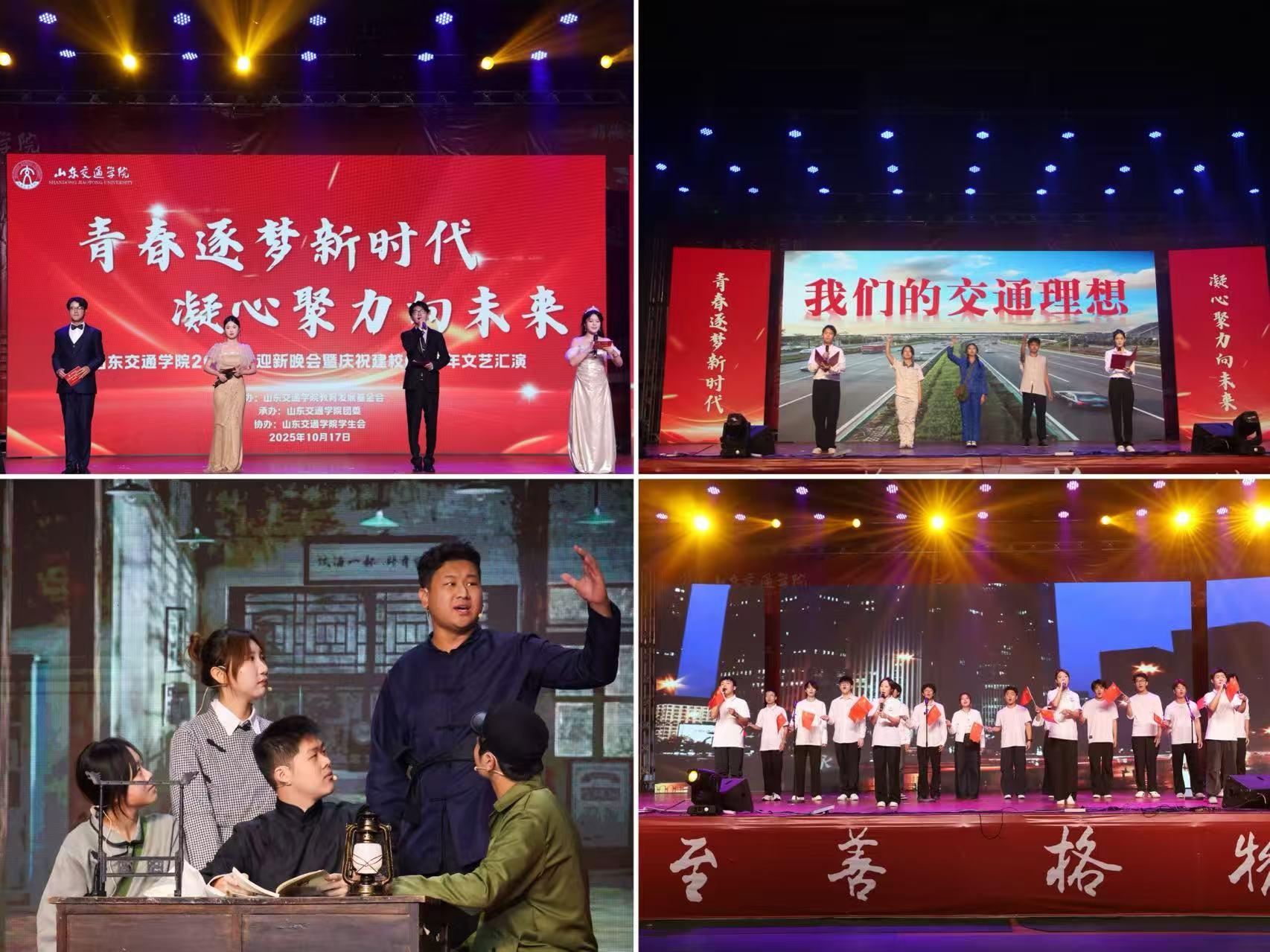 10月17日晚,学校在长清校区体育馆举办“青春逐梦新时代 凝心聚力向未来”山东交通学院2025年迎新晚会暨庆祝建校69周年文艺汇演。