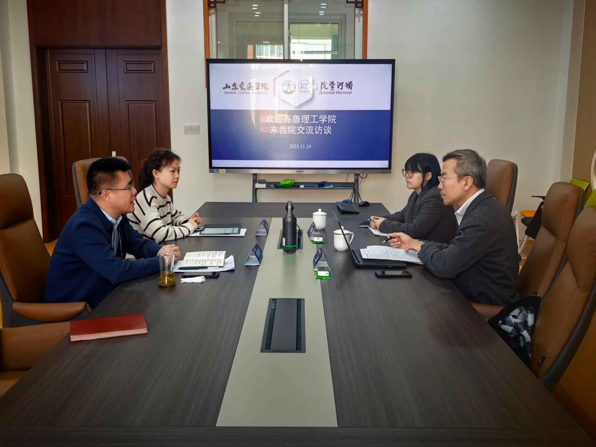 11月24日,齐鲁理工学院国际交流与合作处处长丁磊一行来我校顿河学院调研交流。会议在长清校区2号教学楼会议室举行,顿河学院院长刘春光主持会议。