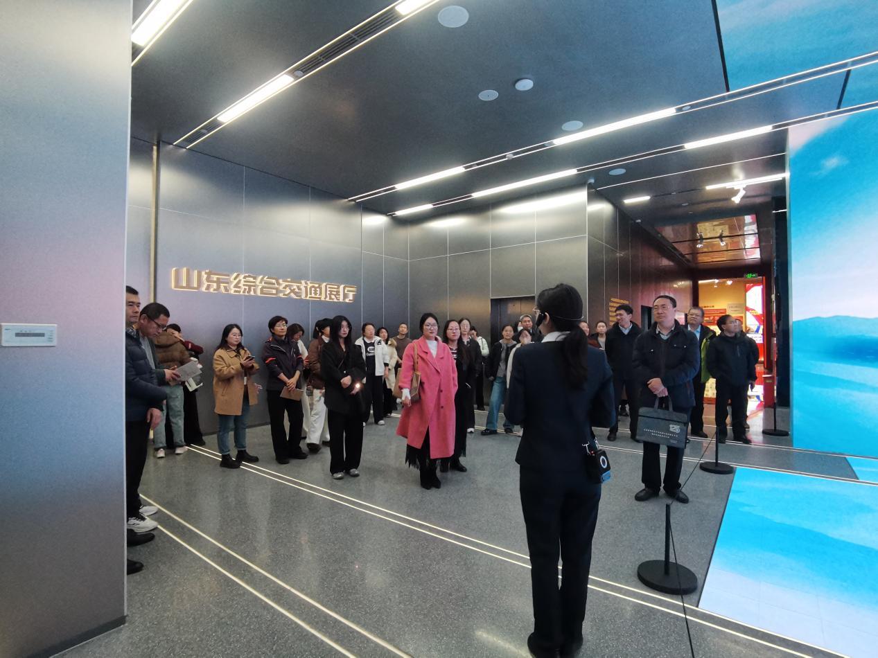 作为全国首个省级综合交通展厅,该展览馆以“交通强国”战略为主线,通过“历史-现在-未来”的叙事逻辑,全景展现了山东交通从古代漕运到现代智慧交通的历史嬗变与发展成就。培训采取沉浸式参观与现场研讨相结合的方式,引导教师从交通发展的历史脉络和科技前沿中挖掘思政元素、汲取育人素材。
