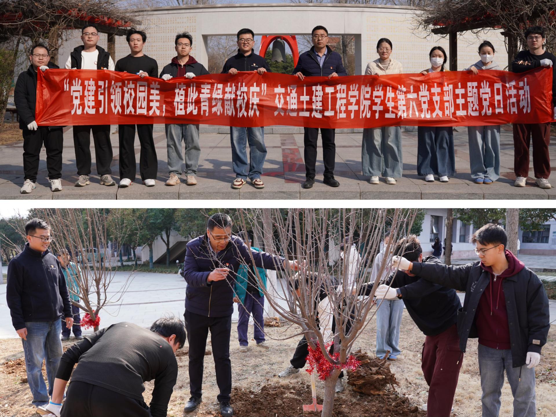 3月12日,交通土建工程学院学生第六党支部在长清校区校友广场开展“党建引领校园美,植此青绿献校庆”植树节主题党日活动。