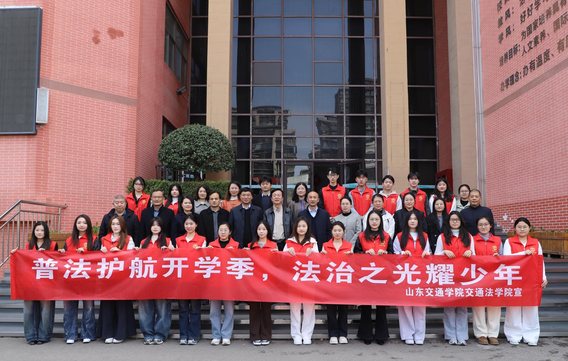3月19日,我校交通法学院联合长清区委政法委、区教体局、区法学会,在山东师范大学中建长清湖实验学校举行长清区校园法治教育“青衿·司爟”普法行动启动仪式。长清区法学会党组成员、专职副会长兼秘书长范勇,区教育教学研究中心副主任、区教育体育局机关党委副书记齐怀军出席并讲话。长清湖实验学校校长徐君主持仪式。