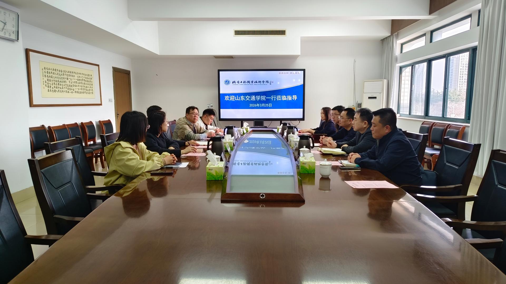 3月25日上午,我校继续教育学院院长王德利、轨道交通学院院长潘为刚一行赴济南工程职业技术学院开展座谈交流。济南工程职业技术学院党委委员、副院长张广传参加座谈。