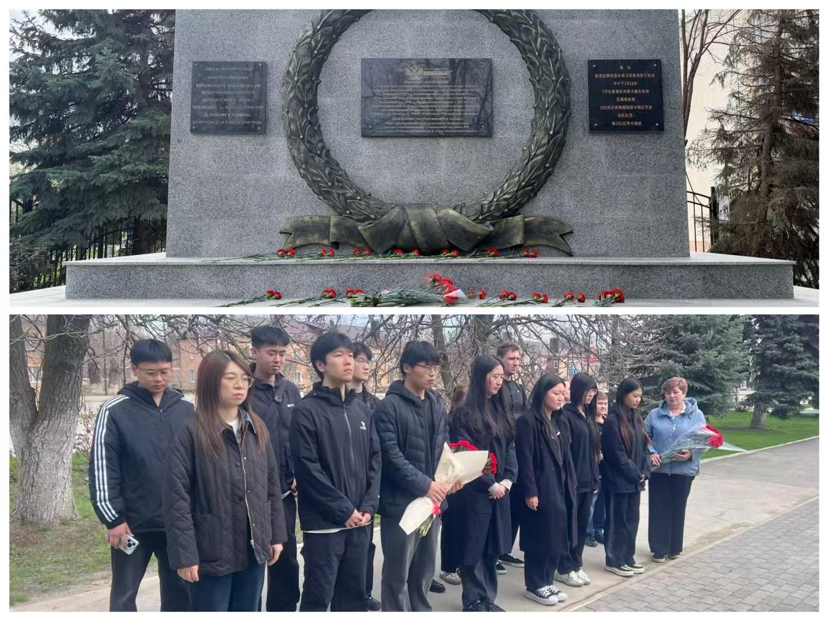 清明节前夕,山东交通学院欧美同学会俄白联络站部分成员及顿河留俄学生会学生代表前往罗斯托夫州莫罗佐夫斯克市,开展祭扫中国烈士纪念碑活动,缅怀为保卫苏维埃政权而牺牲的中国籍红军烈士。