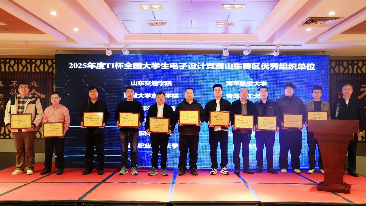 近日,2026年TI杯全国大学生电子设计竞赛山东赛区师资培训暨2025年度颁奖典礼在山东管理学院举行。我校凭借出色的赛事组织与人才培养成效,被授予2025年度山东赛区“优秀组织单位”荣誉称号,信息科学与电气工程学院(人工智能学院)秦石铭老师获评“优秀指导老师”。