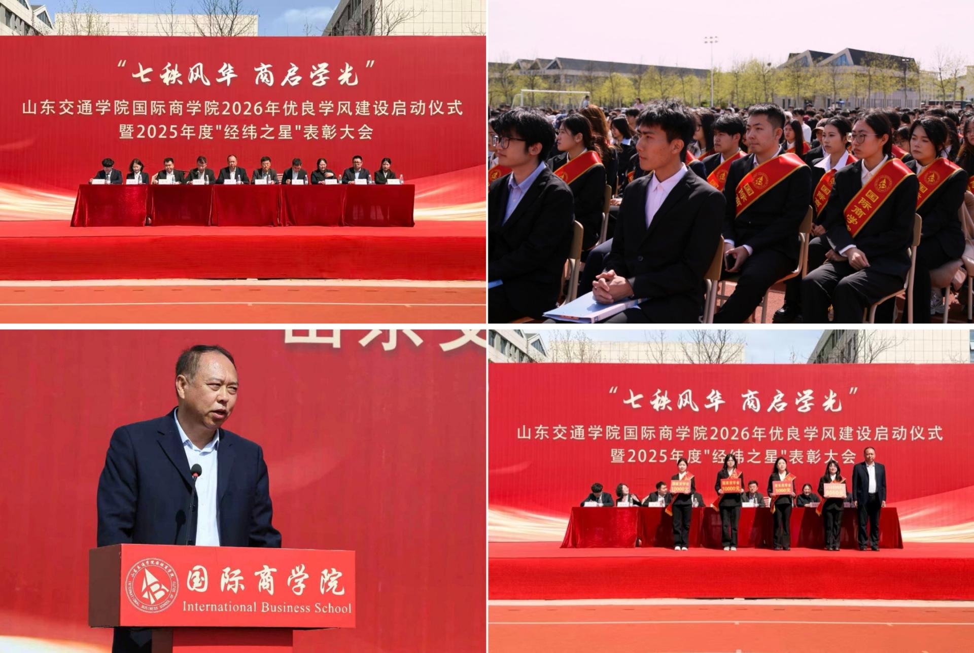 4月22日,国际商学院在威海校区操场举行“七秩风华 商启学光”2026年优良学风建设年启动仪式暨2025年度表彰大会。