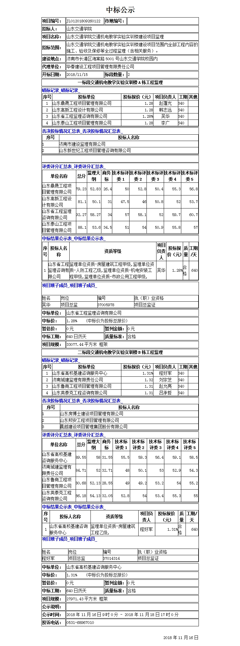 山东交通学院交通机电教学实验实训楼建设项目监理中标公示