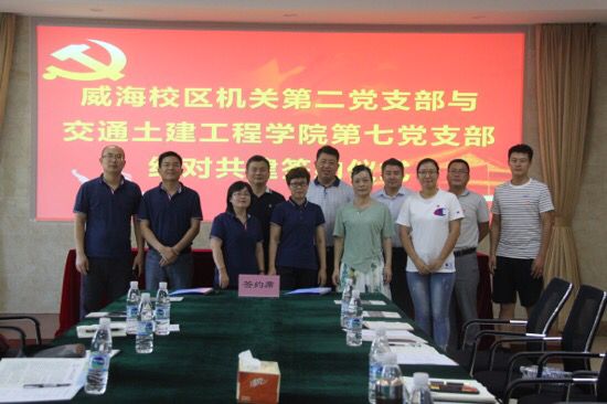 为提升基层党建工作水平,加快过硬党支部建设,8月18日,威海校区机关第二党支部与交通土建工程学院第七党支部在威海校区第一报告厅开展结对共建签约仪式。