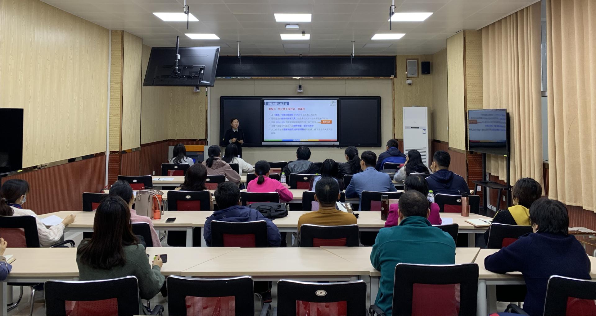 为推进我校一流本科课程建设工作,打造具有高阶性、创新性和挑战度的“金课”,10月21日下午,教务处在工程训练中心智慧教室H408举办了一流本科课程政策解读及申报指南培训活动,邀请智慧树高级课程顾问胡月英担任主讲嘉宾。