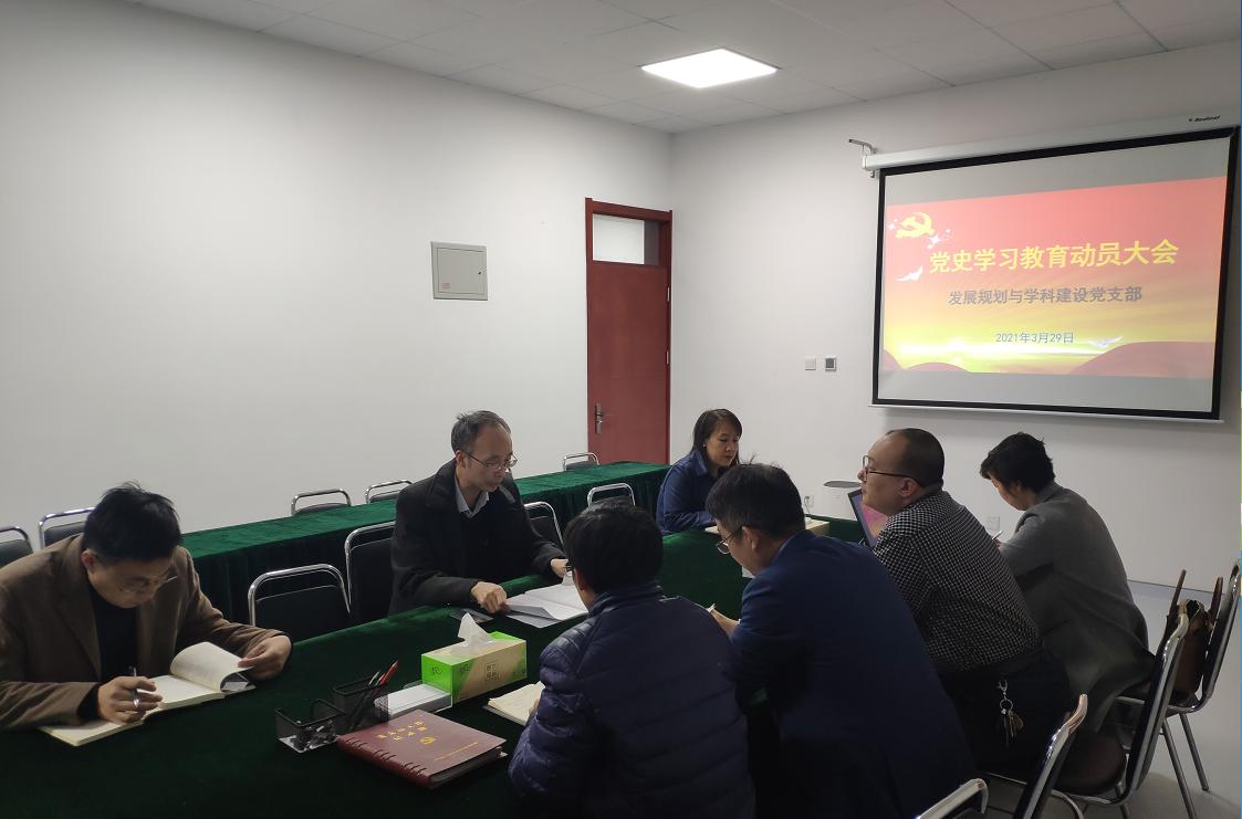 3月29日下午,发展规划与学科建设党支部在明德楼229会议室召开党史学习教育动员会并举行第一次集体学习。支部书记汪明栋主持会议并做动员讲话,支部全体党员干部参加会议。