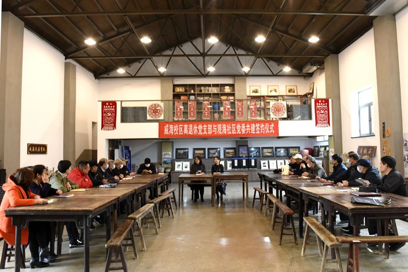 4月2日,威海校区离退休党支部与环翠区竹岛办事处观海社区党委举行结对共建活动。