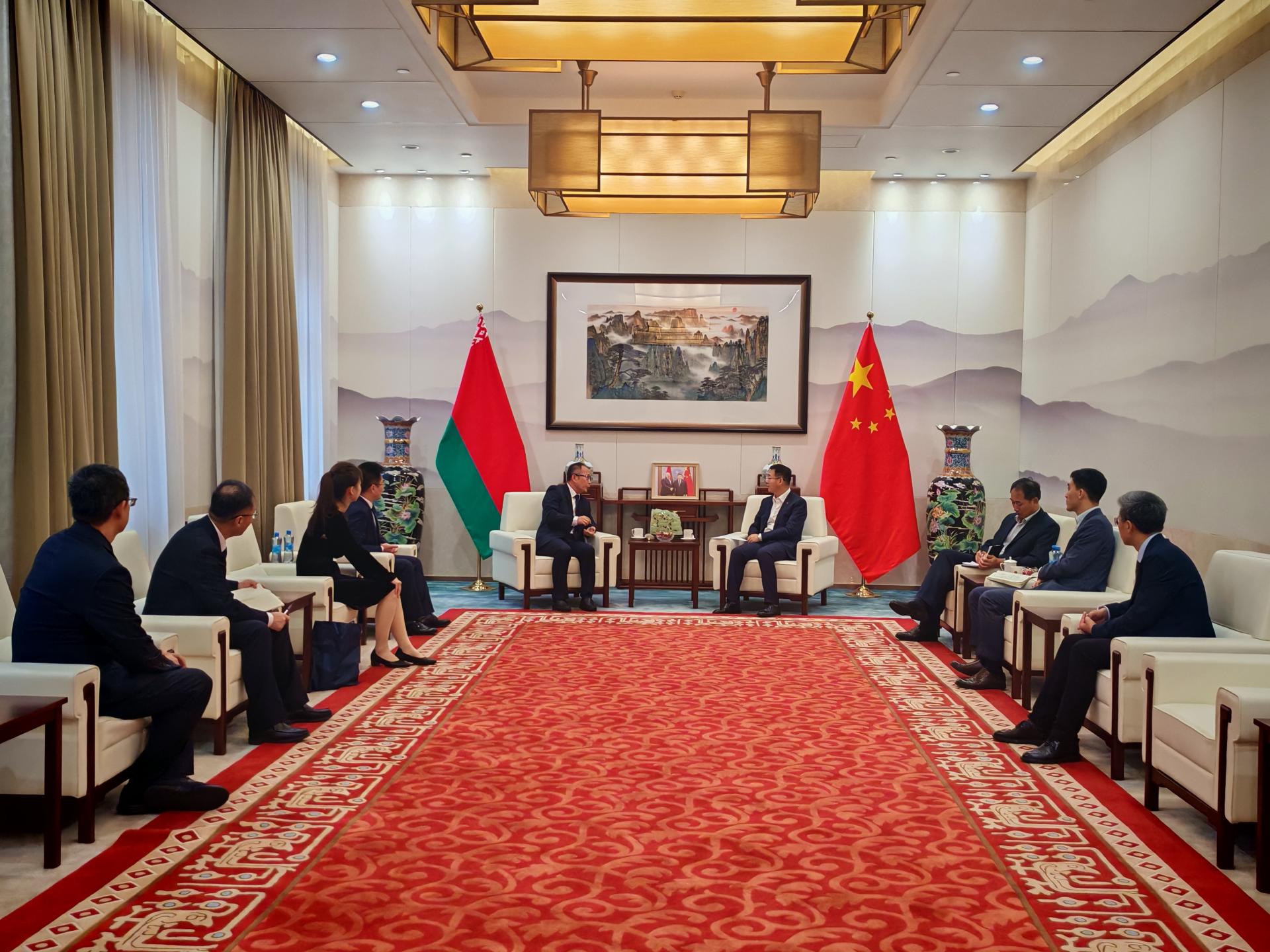 在白俄罗斯明斯克市,访问团专程拜会中华人民共和国驻白俄罗斯大使馆,与张汶川大使进行交流。双方就协助我校拓展白俄罗斯优质合作院校、加强高水平大学师生双向交流、科研国际合作、扩大白俄罗斯学生来鲁留学规模、巩固中白友城关系成果、共同打造“留学中国、学在山东”品牌等议题进行探讨。