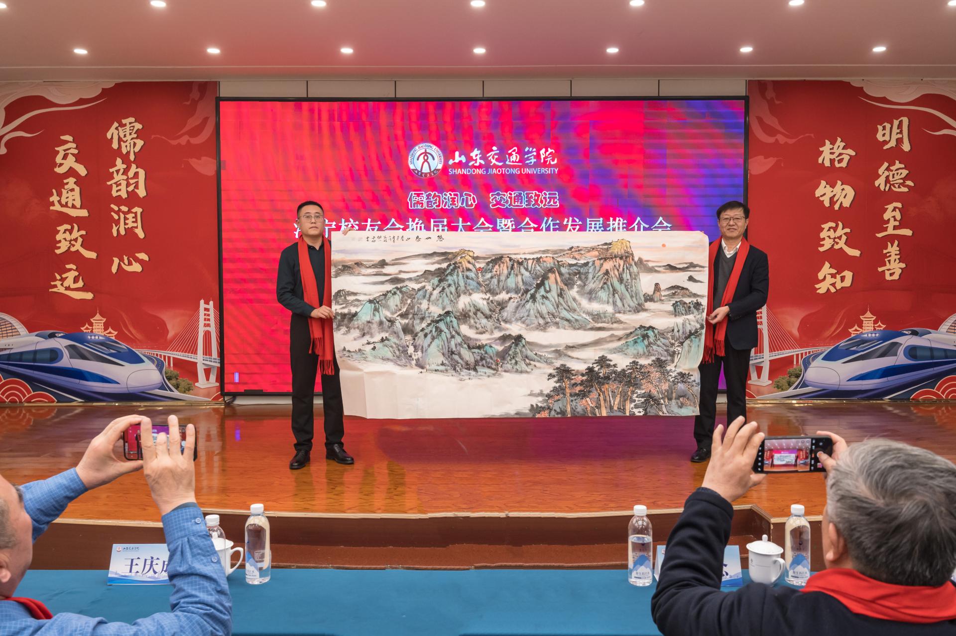 泰安校友会向济宁校友赠送《泰山图》画作一幅。