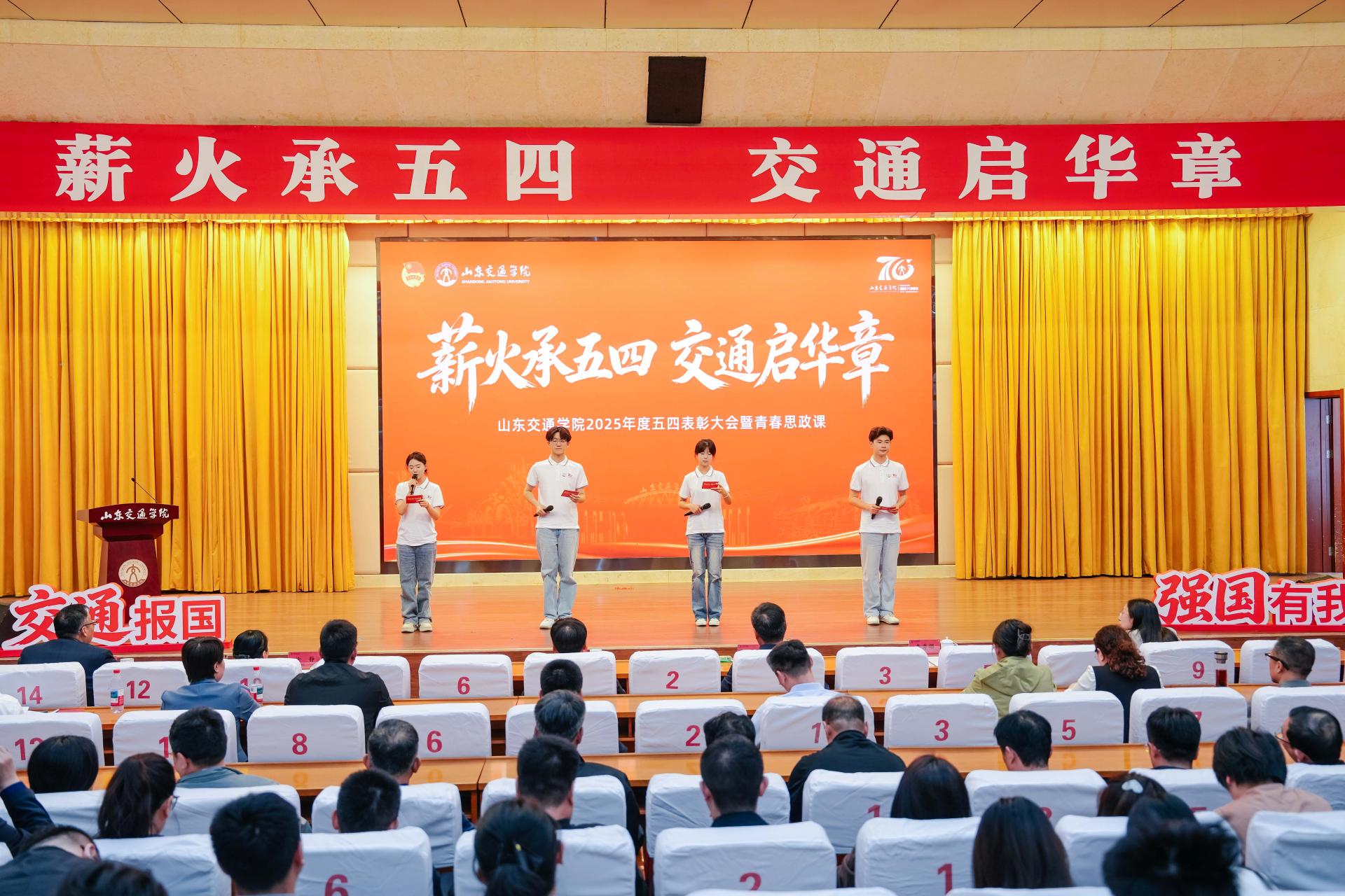 4月28日下午,学校在长清校区学术报告厅举行“薪火承五四·交通启华章”山东交通学院2025年度五四表彰大会暨青春思政课。学校党委领导班子成员王伟、聂法良、李秀领、徐静、张萌萌、刘广东出席大会。