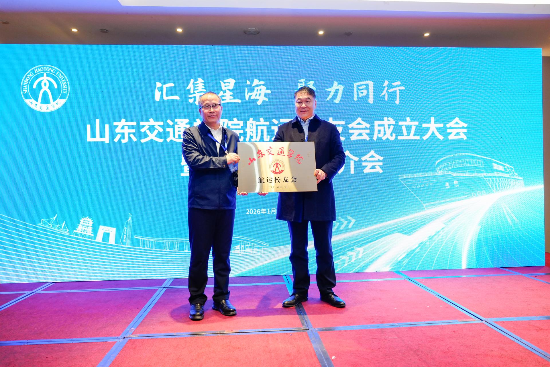 1月23日,学校航运校友会成立大会暨合作发展推介会在威海召开。学校党委副书记李贞涛,党委委员、党委统战部部长刘庆波,威海海事局船员处处长王佳,山东大学威海分校校地合作与校友工作办公室副主任吕健,以及来自全国各地的校友代表100余人参加大会。