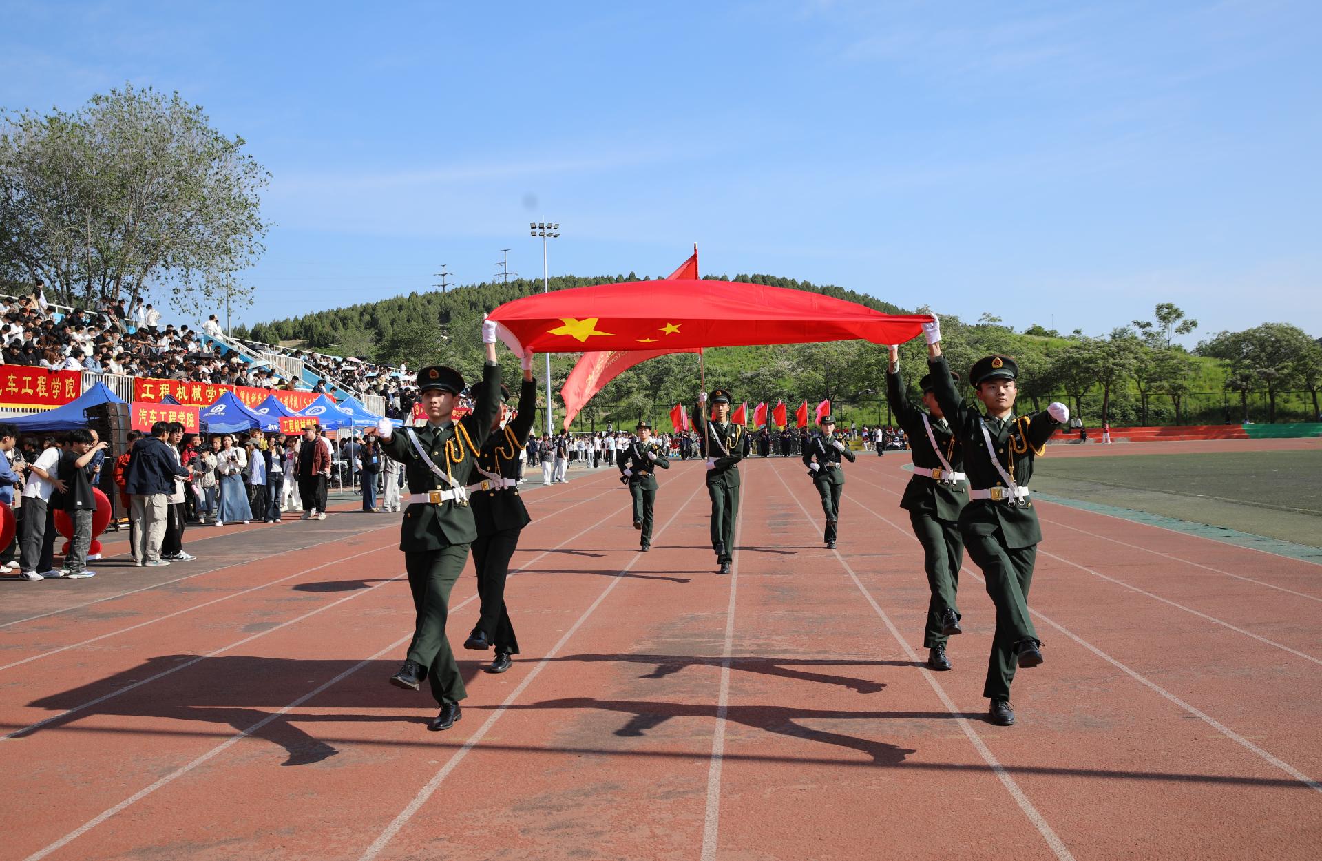 嘹亮激昂的《运动员进行曲》响彻全场,国旗护卫队、彩旗队、军魂连,教职工、各二级学院及校友代表队步伐坚定、队列整齐,伴着铿锵口号依次行经主席台,生动彰显出全校师生昂扬奋进、活力满满的精神风采。