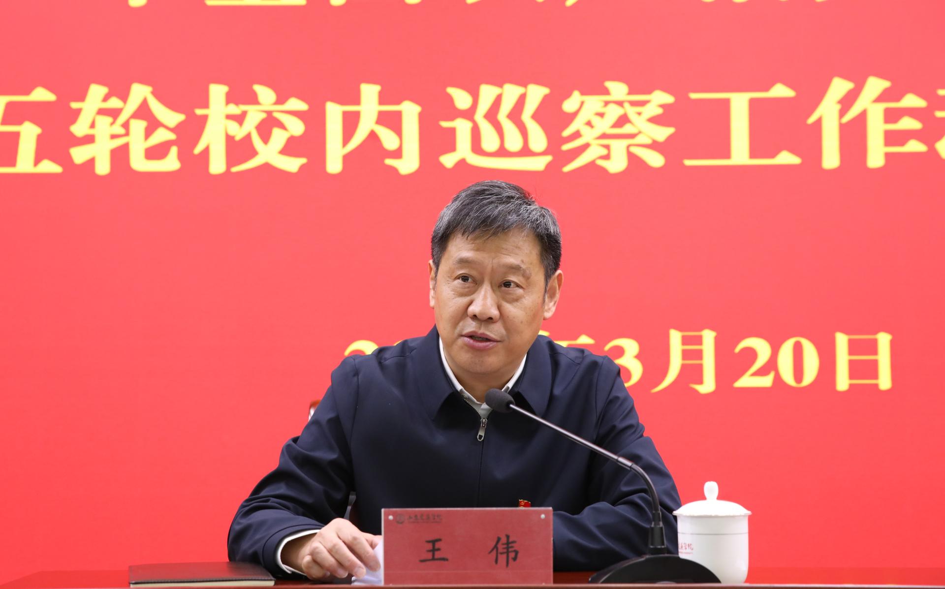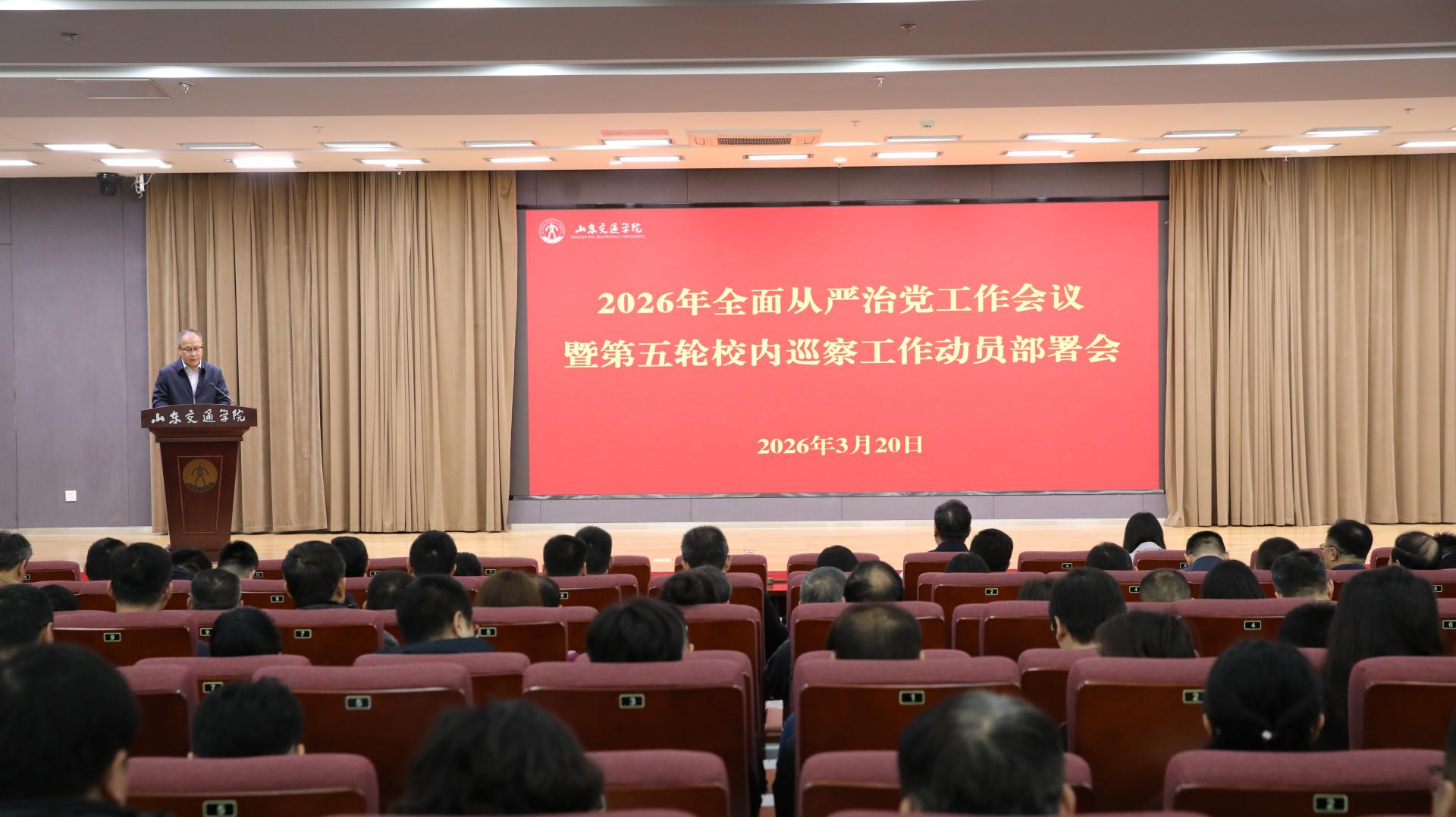 3月20日上午,学校在长清校区明德楼101报告厅召开2026年全面从严治党工作会议暨第五轮校内巡察工作动员部署会。学校党委领导班子成员王伟、李贞涛、王兴盈、刘庆波出席会议。会议由党委副书记李贞涛主持。