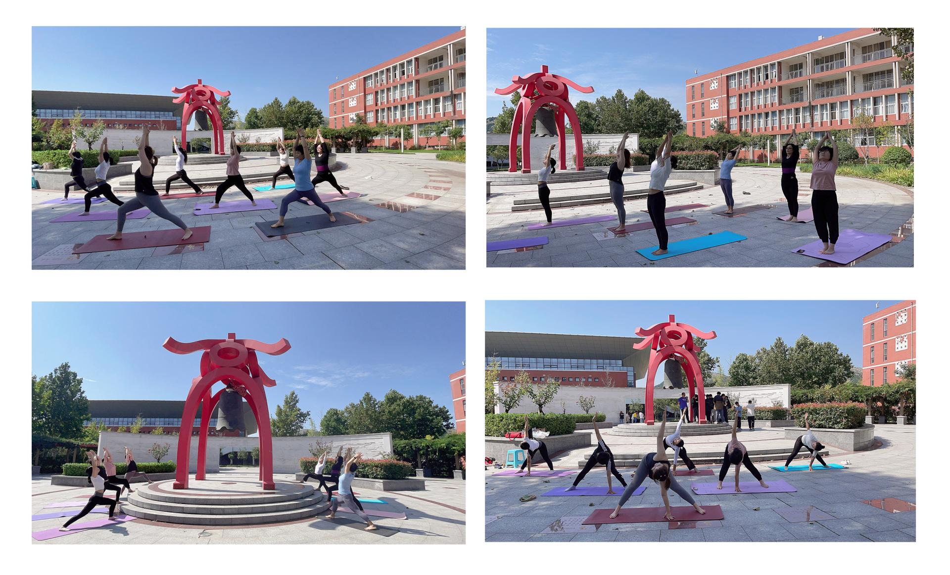 9月30日,久雨新晴,物情显焕。在我校教职工文体协会成立之际,我校教职工瑜伽协会在校友广场,开展了以“献礼校庆 瑜悦身心”为主题的户外瑜伽活动。