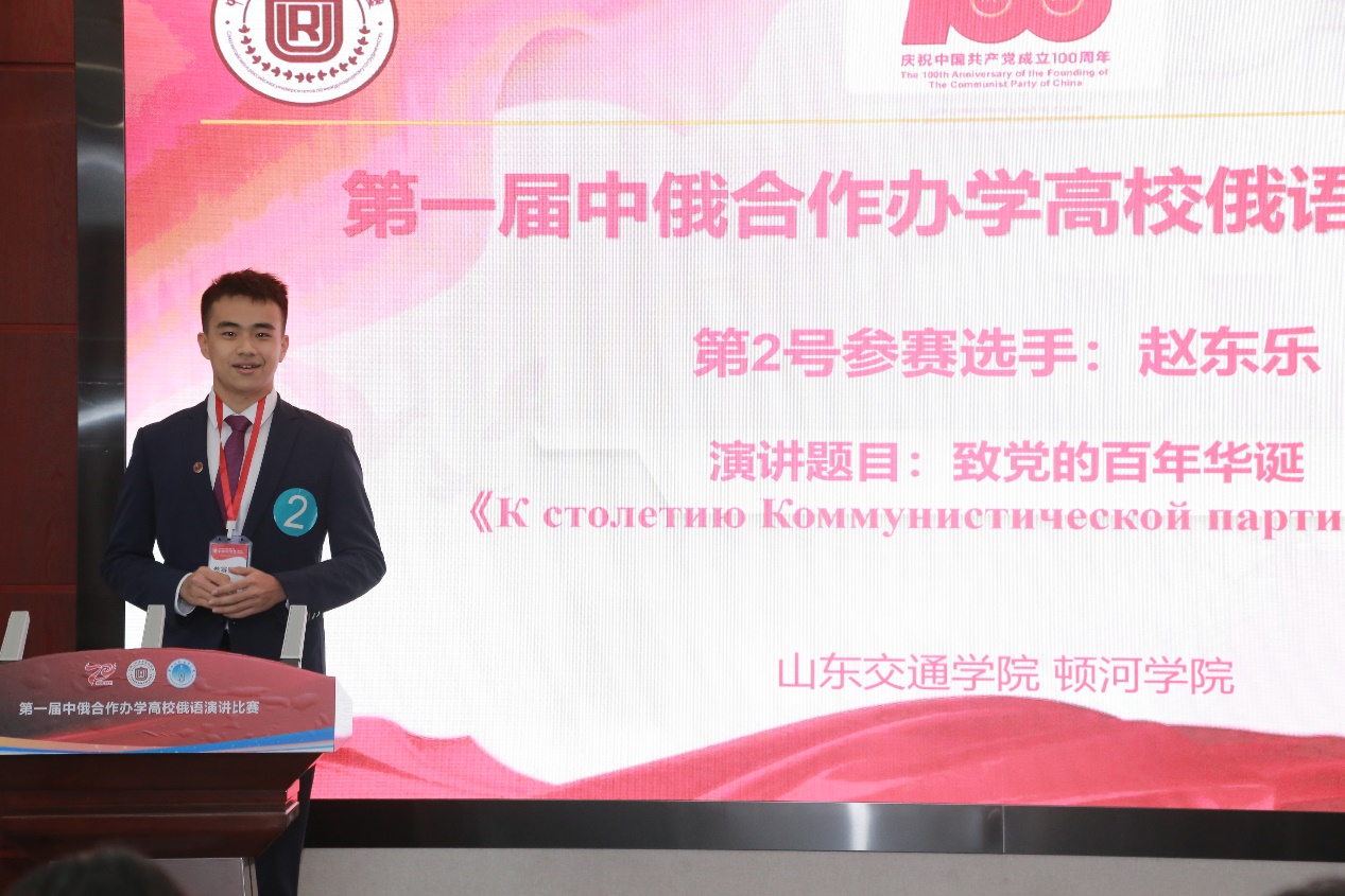山东交通学院中外合作办学机构顿河学院派出两名选手参赛,经过激烈角逐,二年级赵东乐获得低年级组一等奖第1名,三年级辛逸阳同学获得高年级组一等奖第2名。山东交通学院成为本次大赛唯一一所包揽低、高年级两个组别的一等奖的高校。